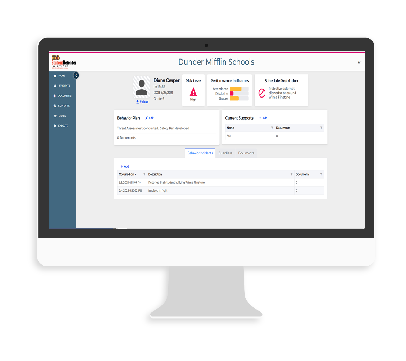 Develop comprehensive behavioral plans, schedule restrictions, and safety plans as well as assigning responsibilities to safety team members with automated reminders and alerts to ensure the student receives the assistance they need.